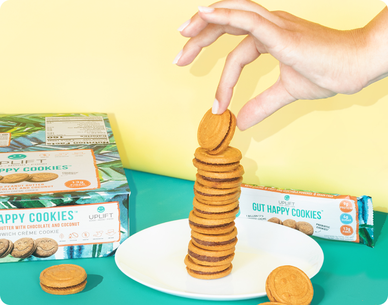 I created Uplift Food to help people get their daily dose of gut-healthy prebiotics and probiotics through delicious, convenient and nutritious snacks