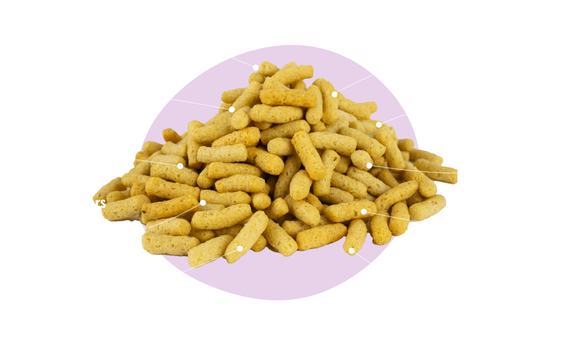 INGREDIENTS: Fava bean flour, green pea flour, high oleic sunflower oil, red lentil flour, chicory root fiber, fava protein, pea fiber, barley fiber, citrus fiber, sea salt, sugar, inactive yeast, spices (including mustard), yeast extract, onion powder, garlic powder, gum arabic, lactic acid, citric acid, natural flavor, Probiotic (Bacillus Coagulans GBI-30 6086) Made on a line that also processes: Milk (Dairy), Egg, Soy, Wheat (Gluten)