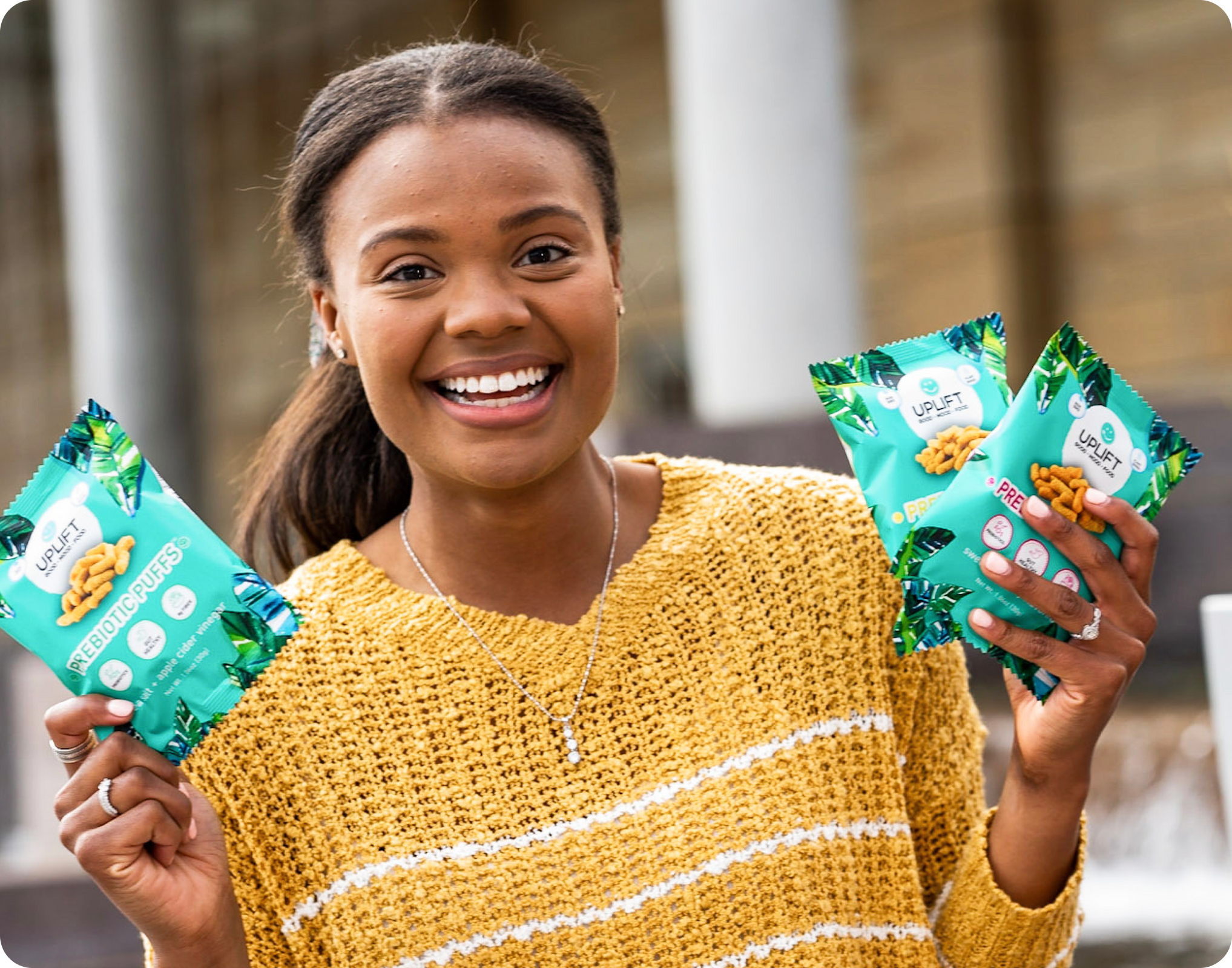I created Uplift Food to help people get their daily dose of gut-healthy prebiotics and probiotics through delicious, convenient and nutritious snacks